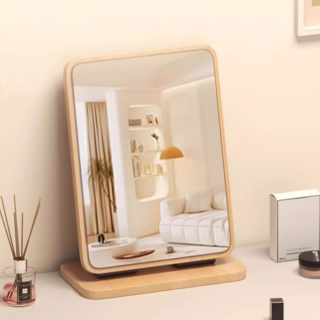 Softree-Mirrors-PC Rectangular Compact Table Mirror Vertical Wood Frame Mirror Table Mirror 90 Degree Rotation Makeup Mirror.